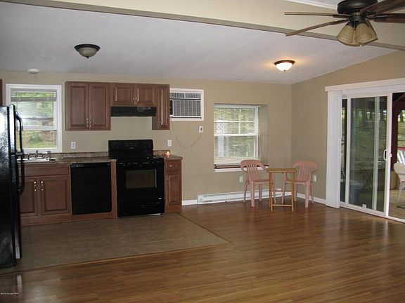 STOP THE CAR! Your Charming vacation getaway or year round home awaits! This home is nestled on an acre lot, LOW MAINTENANCE two bedroom 1 full bath vacation retreat with a great room with WOOD BURNING FIREPLACE, full sliders give the entire house an open, bright, airy ambiance that opens up to a generous Deck and Screened in Porch. with a VIEW OF THE WOODS. Located close to Bushkill Falls, Skiing, lakes, shopping. Use of private horse stables, pool, tennis etc. VERY LOW taxes. FOR MORE INFO TEXT 505055 TO 35620