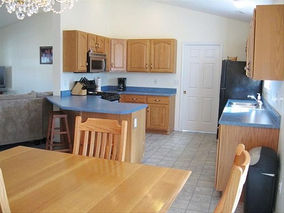 <br>Open floor plan with vaulted ceilings and large rooms. Master bedroom suite with separate whirlpool tub and shower. Sliding glass doors off dining room open to covered deck. Laundry room off main floor kitchen leads to oversized 2 car garage with extra storage. All bedroom and hall closets are walk-ins. Zoned heating and cooling. Lower lever has bedroom, office, full kitchen, dining room, family room, full bathroom, laundry room, storage room, hall closets and separate entrance. Large fenced yard with 12' x 40' patio. House is located on cul-de-sac and backs to trees.<br><br>--------------------------------------------------------------------------------