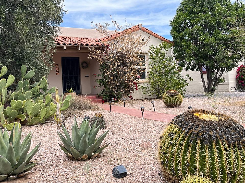 This sweet Sam Hughes bungalow has two bedrooms, one bathroom and an extra sun-room that can serve as a study or music room. The house is located on surprisingly quiet 7th Street, within minutes of the University of Arizona and Bob Dobb's by foot or bike. It has both evaporative cooling and air conditioning, heating, new stove and washer/dryer. There is one small garage with car door and man door to back yard. Front yard has irrigated desert trees, shrubs and cactus. Backyard has irrigated Bermuda grass lawn, two citrus trees and a back porch. Tenant pays for utilities: Water, electricity and gas. No smoking permitted. No drugs. Current tenant will be in the house through May 14 - do not disturb. Showings can be scheduled May 15-20. In addition to the garage, parking is available in the driveway but must be coordinated with the adjacent rental which we also own. Street parking is also available but must be permitted by the City. Rent is $2000/month, deposit $2000. Duration: 12 months. Small dog is acceptable with approval of breed and disposition by landlord. In addition to the Zillow application, landlord will require additional information on employment, income, previous rental history and references.