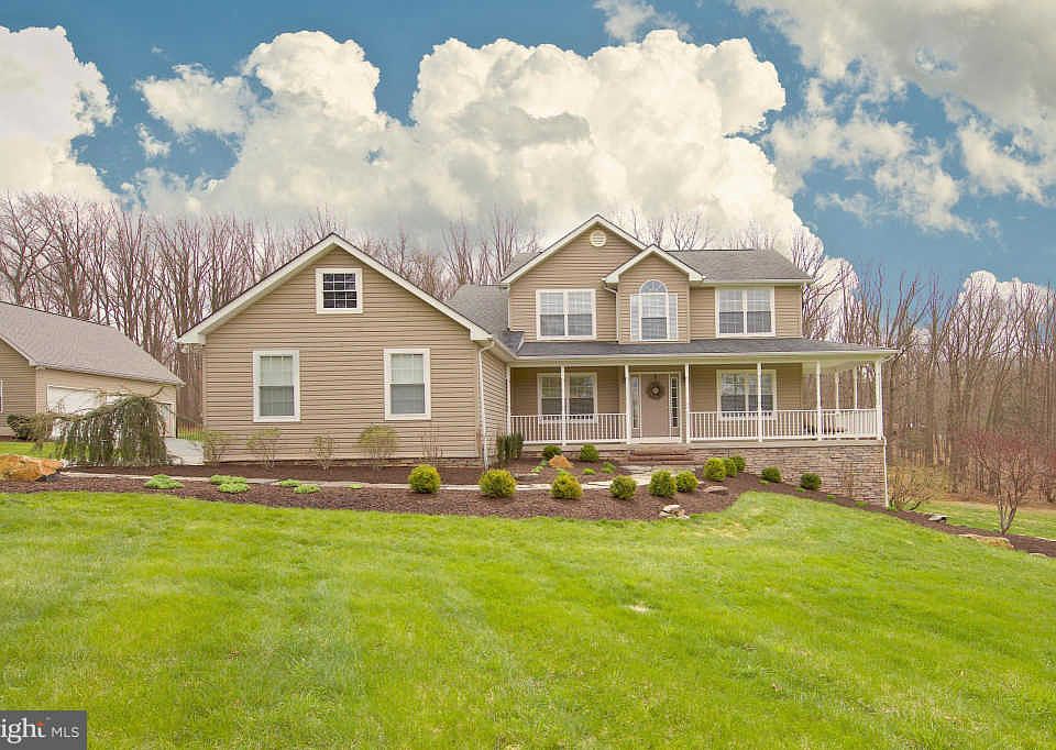 Porch front Colonial with 3 car attached garage and a separate two-car w/loft. Car buff's dream (lift negotiable) Lg.Mudroom side ent. Kitchen w/island sep. table space and Open to fabulous family Rm. Ceiling to floor stone fireplace. FF bedroom, Den, Dining Rm. Catwalk overlook, Master BR & Ba. Lg Walk-in, 2 other nice sized BR's and full hall bath. Fin. LL with Full bath, Poss. 5th Bedroom. Pool