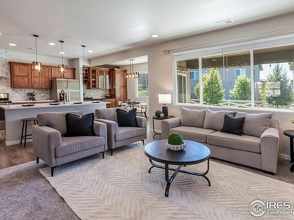 Seller NOW offering a $15,000 credit at Closing. BUYERS use this credit to cover out of pocket Closing Costs, get a LOWER INTEREST RATE, add in additional fencing, or REDUCE THE PRICE of the house to $574,899!!! Take advantage of this huge incentive before the market picks up in the Spring of 2026! This one owner contemporary home has been beautifully maintained with an open layout, modern finishes, & thoughtful details. Just 10 mins to Old Town & 5 mins to I-25. The exterior blends clean lines, stylish brickwork, large windows, & a welcoming front porch. Inside, a flex area/office sits off the entry, followed by a half bath & a spacious living area anchored by a cozy gas fireplace. The living room flows seamlessly into the chef's kitchen, featuring a 5-burner gas range with hood, in-island microwave, breakfast bar, walk-in pantry, & alder cabinets with upgraded pull-outs & hardware. All new tile runs counter-to-ceiling behind the stove and the addition of the butler's pantry is a stunning and super practical upgrade that extends into the dining room, complete with contrasting quartz counters, custom wine rack, & extra storage. The dining area comfortably seats 8+, opening out to a spacious covered back porch, back yard, & HOA maintained greenbelt - an ideal spot for morning coffee or evening gatherings. A mudroom / drop zone connects the oversized garage (576 sq ft vs. a typical 440 sq ft garage) to the main floor. An upgraded open rail staircase leads you upstairs to a spacious loft - separating the private primary suite from the guest rooms. The primary features a huge walk-in closet, custom sliding barn door, walk-in shower, & dual sinks with ample counter space. Two generously sized guest rooms share a full bath, & a fabulously updated laundry room adds extra storage. Brand new carpet, upgraded lighting throughout, & spaces designed for both entertaining & everyday comfort. Low HOA & no Metro Tax. Click on video/virtual tour for great guided tour.