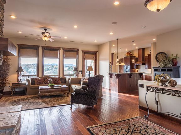 This Beautiful 4 bedroom 4 bath home in the quiet neighborhood of Prescott Highlands served as the model home for a local builder and was also featured in the Oct/Nov 2006 issue of Prescott Woman Magazine. Enjoy mild summers in the magnificently designed and landscaped back yard where you will find a 700 sq. ft. Cabana with built in stone fireplace, ceiling fans, 6 person Jacuzzi. Don't pass up the opportunity to view this magnificent home. Extras include: New counter tops in kitchen and bathrooms, oversized 2 car garage, 3 separate AC/furnace, Soft water, Jacuzzi, Wet Bar, Central Vac, Unfinished storage room, and much more. No HOA, No fees. Owner /Agent.