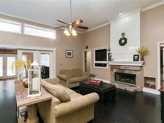 - Interior Features: Cathedral Ceiling(s), Ceiling Fans(s), High Ceiling(s), Master Bedroom Downstairs, Split Bedroom, Vaulted Ceiling(s), Crown Molding, Walk-In Closet(s), Skylight(s), Window Treatments, Unfurnished, Open Floorplan, Solid Surface Counters, Solid Wood Cabinets, Eating Space In Kitchen, Kitchen/Family Room Combo, Wet Bar, Stone Counters, Thermostat