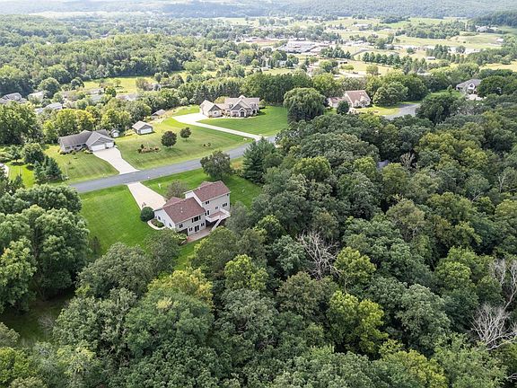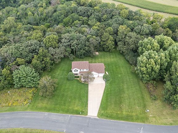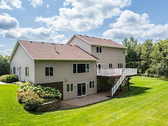This home masterfully blends country charm with city convenience. Situated within city limits, it offers a serene country lifestyle on nearly two acres of private, wooded backyard, which borders 200 acres of state-owned land. This exceptional location ensures privacy, superb hunting opportunities, and a haven for wildlife enthusiasts. The meticulously maintained 2-story, 5-bedroom, 4-bath residence is designed for both comfort and style. On the main floor, you’ll find a welcoming family room, a formal dining area, and a convenient laundry room. The kitchen is a highlight, featuring ample storage, a stylish backsplash, and elegant quartz countertops. An informal dining area opens onto a deck, ideal for outdoor meals and relaxation. The living room boasts a striking floor-to-ceiling brick fireplace, complemented by built-in cabinets and shelving—perfect for cozy evenings and enjoying the beautiful views. Upstairs, the home offers three bedrooms, including a generous primary suite with a large walk-in closet and an ensuite bath featuring double sinks, a jetted tub, and a separate shower. The lower level includes two additional bedrooms and a family room with a walk-out, providing extra space and flexibility. Located within walking distance to the High School, Athletic Fields, Aquatic Center and a short commute to Rochester, this property is ideally positioned. Chatfield also provides access to the Bluff Area’s extensive 4x4 trails, the Lost Creek Hiking Trail, and the Chatfield Performing Arts Center, known for its live music and theater. This property truly offers a harmonious retreat for modern living amidst scenic surroundings.