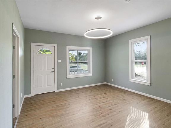 This beautifully remodeled 3-bedroom, 1.5-bath home sits on a spacious corner lot and boasts modern upgrades throughout. Enjoy peace of mind with a brand-new roof, siding, and windows. Inside, you'll find fresh interior paint and durable LVP flooring. The kitchen is a standout, featuring granite backsplash and includes a refrigerator, dishwasher, and oven/range. The home’s high ceilings add an airy feel, making each room feel open and bright. Ready to move in and enjoy!