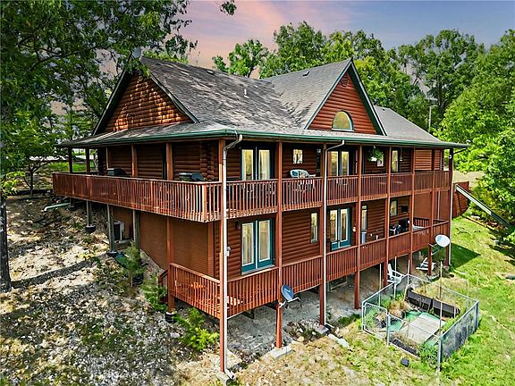 FABULOUS HOME on the north side of Beaver Lake near Starkey State Park and Marina, featuring 3 acres and year round views of Beaver Lake. 3 bedrooms and 3 baths with a bonus office or craft room that could easily be a 4th bedroom. 2 car garage, and ample outside parking for the busy family. Spacious living areas on Both levels for expanded relaxation areas. Covered deck/porches wrap around most of the home for easy shade. Looking for a safe room below ground? You will want to see this. Black Berries and Oaks bring wildlife right into view, Raised and fenced garden is ready for your tending. Main level primary bed and 5pc bath has private porch and views. This listing is already a STR-short term rental 5 star VRBO, It is FULLY stocked from highchairs to fooze ball for the kids, This home is being sold fully furnished. Home was built by Bob Dickens, a kind of particular craftsman that does things like glueing in screws in stairs so they won't creak https://bit.ly/EurekaSpringsLodge.