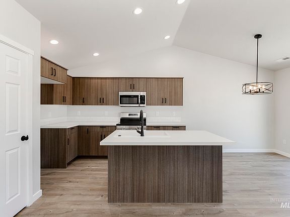 Fall in Love with Low Rates! Promotional rate as low as 2.99%. Ask a Sales Specialist for details! Feel enriched in your brand new home located in Mountain Home, Idaho! The Harlow 1364 is the quaint split bedroom you've been waiting for! Enter inside and be welcomed with 8' ceilings and an entryway that leads you to the heart of the home. The open concept living area & kitchen are at the rear of the home, so the hustle & bustle of the world can melt away. The well-appointed kitchen is equipped with a kitchen island and a spacious pantry. Easy access to the patio from the dining area makes enjoying the outdoors a breeze. Escape to the primary suite at the end of the day, where the en suite bath offers dual vanities and a walk-in closet provides plenty of storage. Two additional bedrooms are located at the front of the home, offering a peaceful separation from the primary suite for added privacy. Photos are of the actual home!