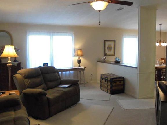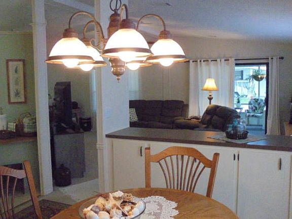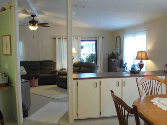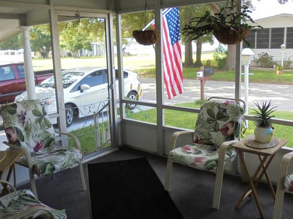 This 3 bedroom, 2 bathroom completely renovated home sits on a premium lot, on a quiet street next to a large pool, tennis courts, picnic area and a lovely garden. Cathedral ceilings, walk-in closets, chair rails, open floor plan, osmosis system. This home has so many extras we can't list them all. Extra rooms that you can use for crafting, exercise or storage. The laundry room is huge, and it has a screened porch on the front and a patio area in the back. Located in 55+ Community. Lot rent of $613 includes water, trash, recycling and more. A must see and a bargain at the price.