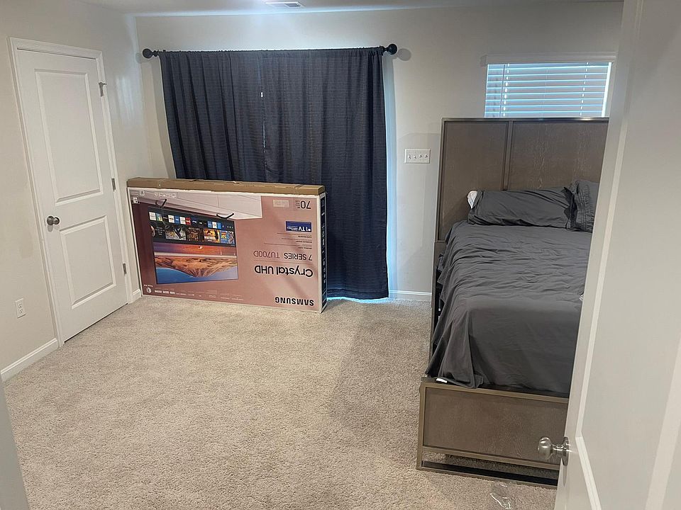 Private basement room in a beautiful townhome in the Woodmor neighborhood. This room and private bathroom are the only rooms in the home on the bottom floor and have access to and use of the garage as well. This lovely home features a shared living, dining room space as well as laundry room. The room is fully furnished with bed, frame, mattress, dresser, nightstand and lamp as well as a large flat screen TV. All utilities are included. Prefer 12 mos; will consider shorter lease with $100/more per month