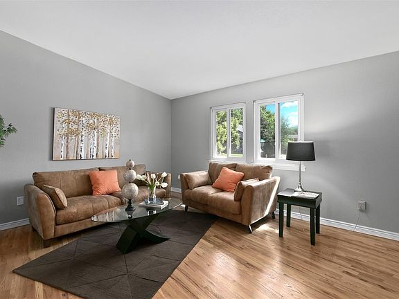Bright east facing home. Spacious open concept layout with hardwood floors on the main level and family room. Cozy family room with fireplace with access to the backyard. Dining opens to a large deck for entertaining. New stainless steel appliances. The master bedroom boasts a lovely ensuite bathroom and walk-in closet. Partially finished basement has a fourth bedroom or flex space and large storage area. Located close to shops, restaurants, entertainment, I-225 and Light Rail.