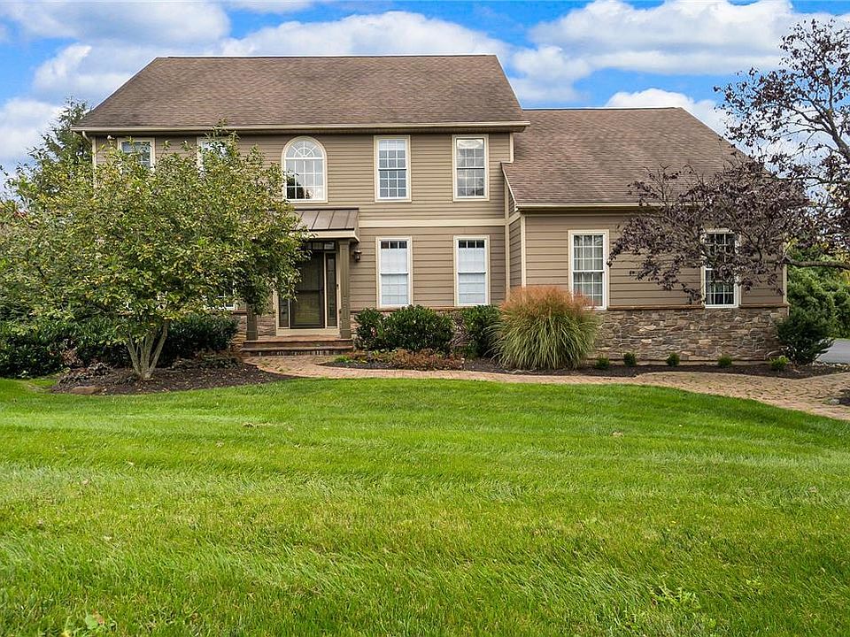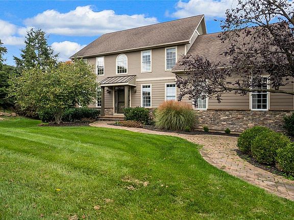 Perfect time to settle in before the holidays! This beautiful home offers three levels of living space. The backyard is a private oasis with mature landscaping, inground pool, hot tub, patio and Trex deck. Great floor plan! Open 2 story foyer, lst fl office, formal living room open to dining room w/crown molding & chair railing. Kitchen has SS appliances, Mahogeny-topped island, granite counters, pantry, breakfast area w/skylight access to deck and overlooks step down family room w/cathedral ceiling, skylights, brick gas fireplace & slider to deck. Laundry rm w/sink and powder rm complete lst fl. Second floor: new hardwood fl on landing; master bedroom has a 2 tier coffered ceiling,2 closets-one being walk-in w/access to storage area; master bath-dual sinks, soaking tub and large tiled walk-in shower. Three nice size bedrooms and full bath complete 2nd floor. Within the last 2 years the 1st floor hardwood floors were sanded and restained as well as the railings & steps to 2nd floor. First floor was repainted as well. Finished daylight walk out basement has a full bath, recreation room w/access to patio, pool, back yard and a tiled kitchenette area. A free standing gas stove adds heat to this level. There is a tiled floor bonus room with access to patio. Great location--close to rail trail, Lehigh athletic fields, movie theaters, shopping as well as minutes from highways for easy commute to NJ, NY and Philly. No open house on Saturday, October 14th -- home is under contract!