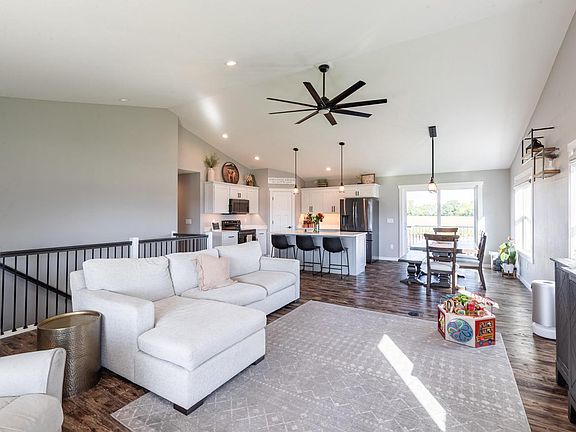 Built in 2021, this 5-bedroom, 3-bath open-concept ranch sits on a large half acre lot in a quiet neighborhood. The home features a spacious garage, convenient main-level laundry, and a modern layout with style throughout. The finished basement expands the living space with two additional bedrooms, full bath, wet bar, and walkout access to the patio. Basement 5th BR features crafty barn doors that allow for either a BR or massive office space. Designed for both comfort and entertaining, this home offers the perfect setup for gatherings indoors or outdoors.