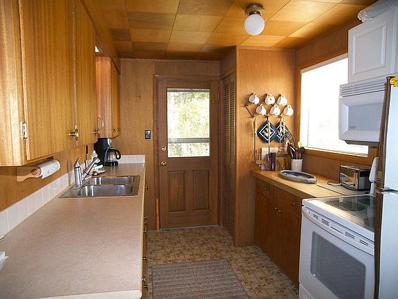 GREAT BUY on this captivating, beautifully built & well maintained 1950s cabin with separate, self-contained guest quarters--on 2 1/3 lots (plenty of room for expension, gardening or an orchard). It is quite private with southwest sun and some view. The main house has a woody feel w/ mahogany ceiling tiles and natural wood kitchen cabinets. There is a wraparound deck & garage. This is a nice location, with a short walk to Legoe Bay and the water.