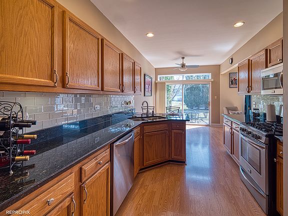 Move right into this spacious, well-maintained 2-story townhome w/southern exposure! This home offers recessed lighting in living rm, dining rm, kit and master bedroom; wood laminate on first level and newer carpeting on second level; updated kitchen features oak soft-close cabinets w/under cabinet lighting, stainless steel appliances including convection oven, granite counters and backsplash; Master bedroom suite has walk-in closet and large master bath w/double vanity; Full basement and 2-car garage! c/a and upstairs windows - 4 yrs. old; private yard w/patio for entertaining and relaxing!