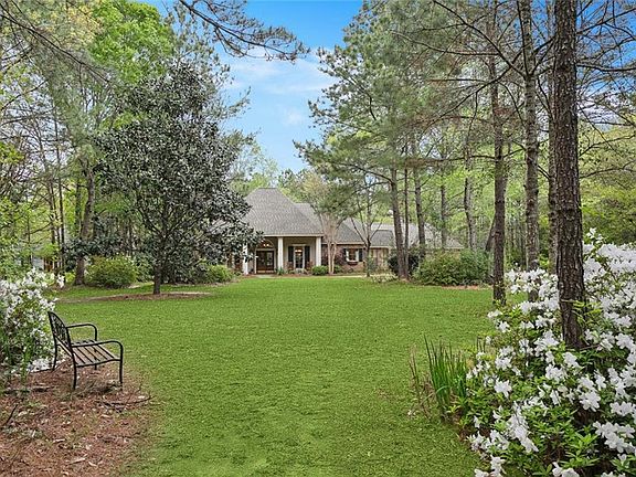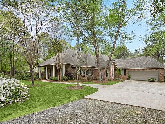 BEST OF BOTH WORLDS HERE! "COUNTRY CHIC" OFFERING JUST 5 MINUTES TO COVINGTON'S CLAIBORNE HILL. Spacious both inside and out AND a "must see." Too often we see nice homes on pitiful country parcels OR disappointing homes on nice property but not in this case! This beautiful home and tranquil property are a tandem treat and rarity. And a convenient location too! Enjoy the peace and quiet of this well-cared for home and property. Owners have lovingly updated throughout their ownership -- from wood floors to a redone Primary Bath and exceptional landscaping including curated trails through the rear of the property. When viewing please allow time to walk the trails and take in the uniqueness this offering provides. In addition to the 4 bedrooms, there is also a separate office. Primary Bedroom has niche area for sitting area. Seller currently using Breakfast Area as sitting room off Kitchen. Separate desk area in Kitchen. Walk-in pantry. Side entry off driveway for easy in-and-out. Primary Bath renovated approx 1.5-2 years ago. Per Seller, roof approx 3 years young; 2 hot water heaters replaced approx 2 years ago; interior repainted just a few years ago. Ceiling fans throughout. All window coverings remain. Plenty of closets & storage (including rear access storage at rear of house - great for lawncare items or workbench). Rear yard fountain & most garden statues have sentimental value to Seller and are excluded. Not expected to last long. Kitchen microwave operable but some buttons "skip" so Seller offering allowance for repair/replacement.