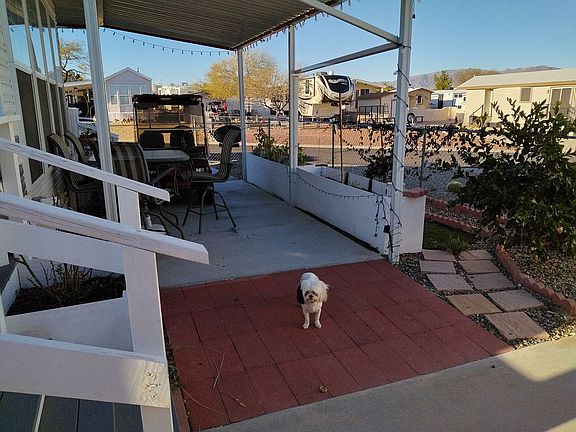 This lovely home of 600 sq.ft, one bedroom/1 bathroom, Cavco Park Model with a 12x16 Arizona room is situated on your OWN view lot of 3600 sq. ft. Both home and property has been recently renovated and landscaped in the fall of 2020. YOU OWN YOUR OWN PROPERTY... No monthly HOA or rental fees at Escapees North Ranch Community Features of the home and property include, 12x12 front covered Trex deck, completely fenced, making it pet friendly and private, concrete parking, with a covered carport for your golf cart, ATV. Raised planter boxes, backyard with pavers, gazebo and Green turf yard. Automatic watering system for citrus trees, roses and other landscaping for easy maintenance year round. There is also a 10x12 shed for extra storage or the handy person, including a chest freezer and Shelving. Amenities of the home has wood laminate flooring though out, kitchen has tile counters and backsplash, lots of cabinetry and pantry area. Gas range, microwave, stainless steel sink spacious dining and entertaining area. Arizona Rm has a gas fireplace, full size stacked washer and dryer and a desk area. Queen size bedroom has two large closets, cabinets and a large under bed storage compartment. Home is move in ready. This affordable property is perfect for year-round living or as a second home for snowbirds . The property is located in North Ranch Escapees Community Development. 12 miles west of Wickenburg, Az off highway 89. There are no HOA fees, however does provide an activity center, clubhouse and pickleball courts. You also have direct access to the desert for off-road adventures. Cash Transaction Only. Annual Fees: 2020/2021 Property Taxes. $879 Assessment 2022. $379 Water/Sewer 12 months. $332 Escapee Annual Membership $49.50 Call or Text Renee at 928-583-4230 for additional information or Email: rdiscovery123@gmail.com
