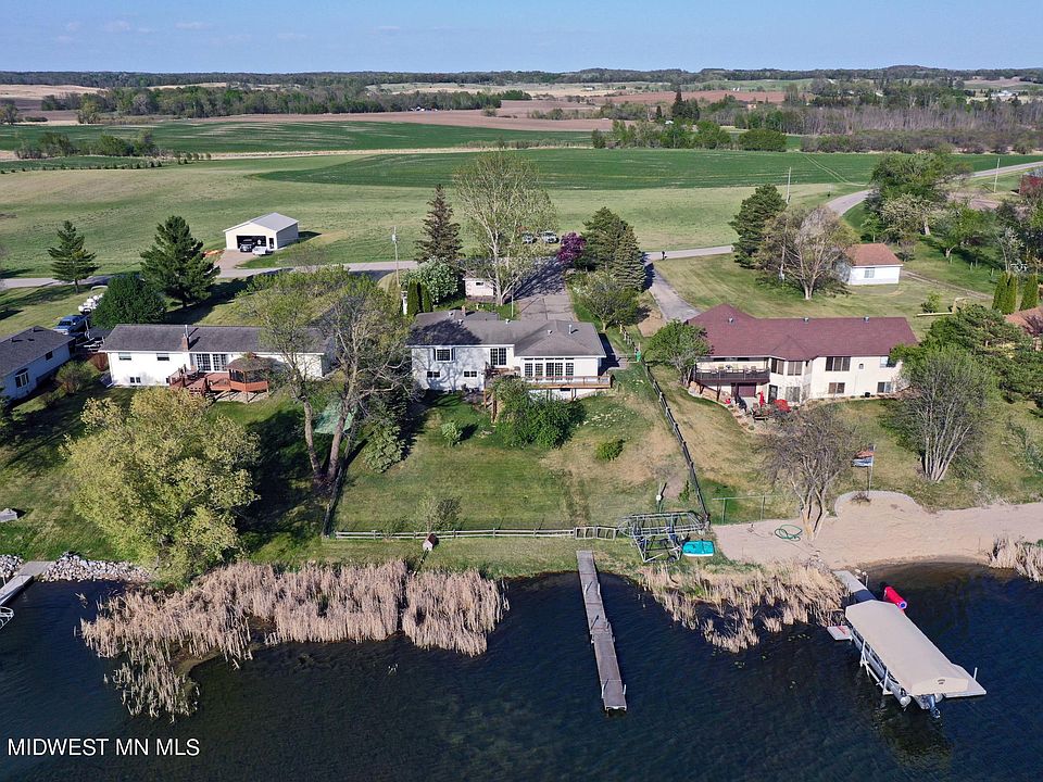 Looking for a year-round lake home in a peaceful spot that's still close to town? This 4 bedroom home on Little Floyd Lake has tar roads to the door, features wonderful sunset views, has a huge amount of storage both inside and out and a convenient walk-out basement. The kitchen and dining feature custom cabinets. The family room has expansive views with floor to ceiling windows plus the coziness of a gas fireplace for the winter months. The sellers have done a water test, a septic inspection and a radon test. The home has updated windows, steel siding, attached double garage plus a storage shed and garden shed, off-peak electric force air heat and central AC. Includes a dock, partially fenced yard, lawn sprinkler system. $475,000 w/2.84 acre backlot.