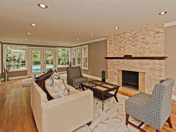 Completely renovated, this gorgeous home with nearly 4,000 square feet of living space creates the perfect combination of updated modern design and classic Shaker style. The open floor plan offers exceptional grace and charm with two fireplaces, refinished hardwood floors, and oversized windows. Greet your guests in the expansive living room with doors leading out to the inground pool. Off the living room is the open concept dining room and kitchen, great for seamless entertaining. The renovated kitchen showcases granite counters, a center island, white cabinetry with over and under cabinet lighting, as well as an eat-in area, perfect for casual meals or your morning cup of coffee. The first floor also boasts a family room off the kitchen and an office/den. The master suite is a truly relaxing retreat featuring a cathedral ceiling, beams, sliders leading out to a balcony, as well as a walk-in closet with built-ins. The master bathroom is encased in marble featuring a glamour bathtub, double sinks, and a walk-in shower. Four more bedrooms can be found on the upper level, including two with their own ensuite bathrooms. A cedar closet and laundry room rounds out the second floor. The lower level features a full wet bar with wine cooler and a recreation room with a fireplace. Outside, enjoy the Cleveland summers with your own inground pool, fenced-in and ready for your delight. Don't miss the uncompromising luxury of this home in the heart of Shaker Heights!