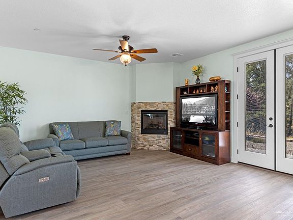 This home was built by Brandon Pidwell for the owner located in the Golden Highlands Community.must have appt to show so you can get gate code for entry. This turn key split wing home offers two bedrooms and two baths with lots of custom features. A beautiful entry door takes you to a living room with remote control stone fireplace, a French door that leads out to a private backyard with oak trees and beautiful view. Kitchen has quartz countertops with an island and white cabinets, stainless steel appliances including refrigerator and double oven, soft closing drawers, and walk-in pantry. Main bedroom has a good size walk-in closet, quartz countertops, and the shower is done with beautiful tiles and a seat for your comfort. Ceiling fans in both bedroom and living room. Custom window shades with remotes in master bedroom and dining room. Luxury vinyl, plank flooring and indoor laundry room. Raingutters and soft close drawers plus pull-out drawers in some of the cabinets. Lots of little upgrades. Did we mention the deer and the beautiful setting.