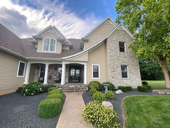 This gorgeous home is a gem in Murphy's Addition in Camanche, IA. The kitchen features granite counters, custom built cabinets and is open to the welcoming dining area. The main level boasts solid walnut, hand-scraped wood flooring. Travertine marble flooring is in the master bath and hall entrance. The great room features a breathtaking 2-story ceiling with custom beamed ceilings. The master suite has a dual tiled shower and the walk-in closet is a room in itself! You will NEVER need more closet space! This home has 3 more bedrooms PLUS a guest bedroom with a private bath. This basement is for fun!!! The family room has a home theater-projector and screen. The custom built bar has a dishwasher, ice maker and fridge. There is also a fitness room. This home has everything including a 20 X 40 ft IN GROUND SWIMMING POOL!! The deep end is 9 ft with a diving board. There is also a fountain that flows into the pool, talk about relaxing! Privacy fence around backyard. Sits on over 1 acre.