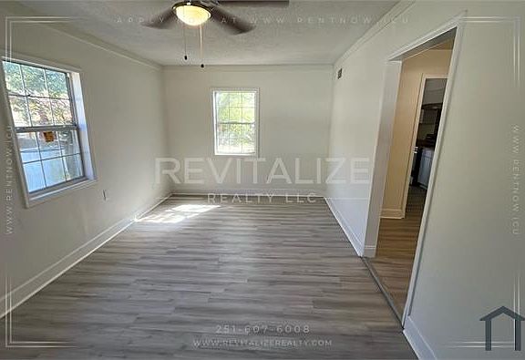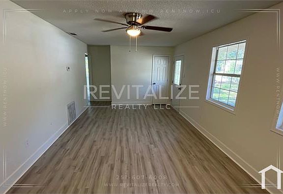 Charming 3 Bedroom/1 Bathroom Home in Mobile! This cozy house features an updated kitchen with a stove, perfect for preparing meals. The bathroom has also been updated for a modern touch. Enjoy the luxury vinyl plank flooring throughout the home, providing both durability and style. Step outside to the large backyard, ideal for outdoor activities and gatherings. The fresh paint gives the home a clean and inviting feel, while the covered front porch offers a relaxing spot to enjoy the outdoors. For more properties like this visit Affordable Housing.