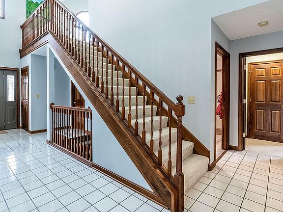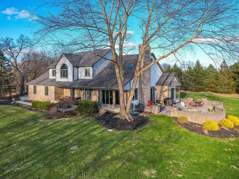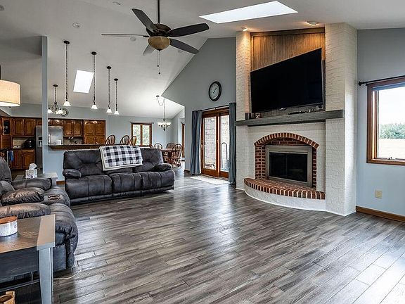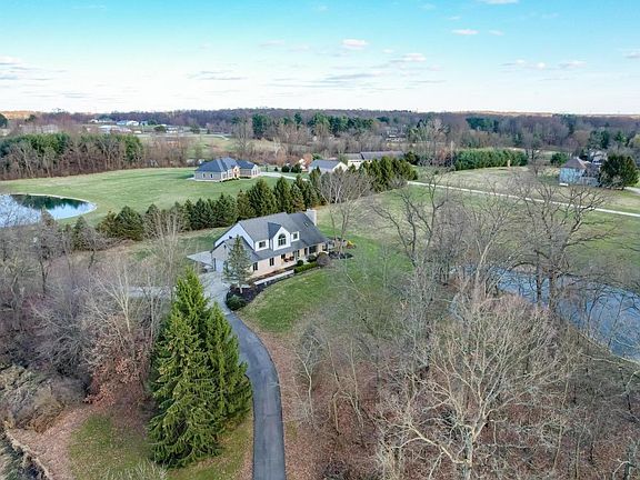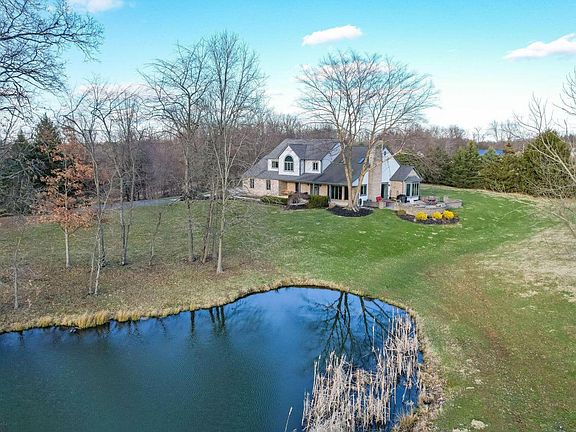Custom built home nestled atop picturesque 2.9 acres with mature trees provides quiet, breathtaking sunsets from the covered front porch. Oak hardwood throughout the kitchen and great room with skylights vaulted ceiling giving the room an airy feel. Sliding glass doors from the great room lead you outside to the oversized stamped concrete patio and fire pit ideal for entertaining guests on warm summer days. Granite countertops stainless appliances in the open kitchen. First floor master retreat w/vaulted ceilings and skylights drawing in the natural light. Two oversized bedrooms bath upstairs and loft space. Partially finished basement wood burning stove and plenty of storage room. Schedule your appointment today to see for yourself and don't forget to walk the 3/4 acre stocked pond.