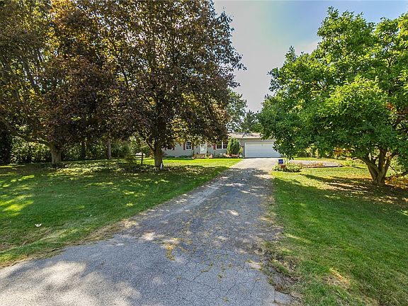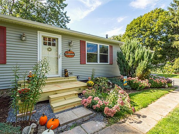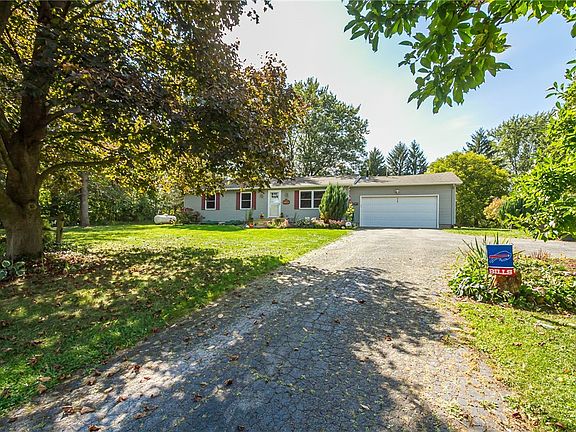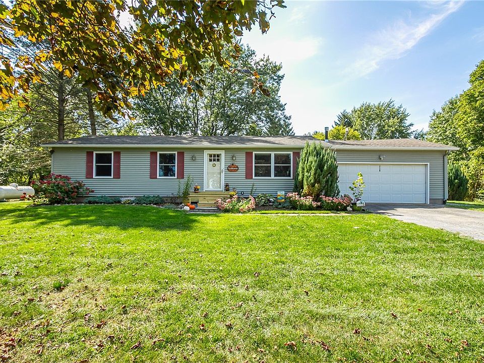 Welcome to 2128 County Rd 8! Enjoy the convenience of one-level living in this 3 bedroom, 1 bath ranch home in the Canandaigua School district! The cozy family room has a gas fireplace (2020) and built-in shelves and opens directly into the eat-in kitchen, which has plenty of cabinet and counter space for cooking and entertaining! 3 bedrooms and a refreshed bathroom with newer floor & fixtures (2021) completes the first floor. The partially finished basement is HUGE and has endless possibilities for gatherings, a home gym, storage, etc! Step outside your kitchen sliding glass door and enjoy the outdoors on the new & beautiful stamped concrete patio overlooking the 1-acre, private lot. Absolutely stunning!