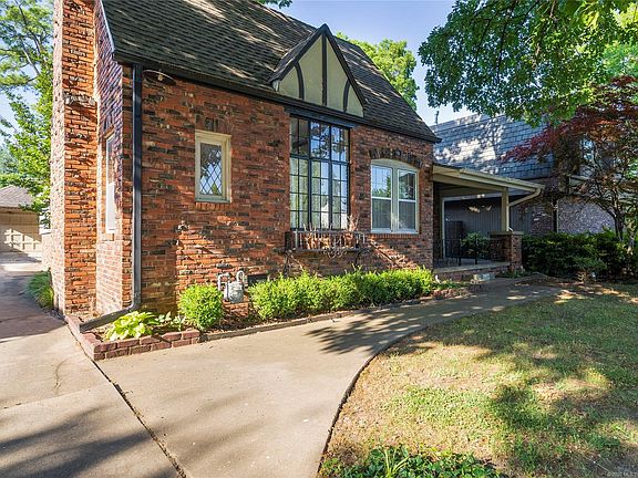 Single story full brick bungalow two blocks from Utica Square. Beautiful original detail and charm throughout; leaded glass windows, 9' ceilings with wood beams, refinished hardwood floors, archways. Updated granite kitchen with new cabinetry and stainless steel appliances. Additional flex room between the two bedrooms. Garage quarters with half bath