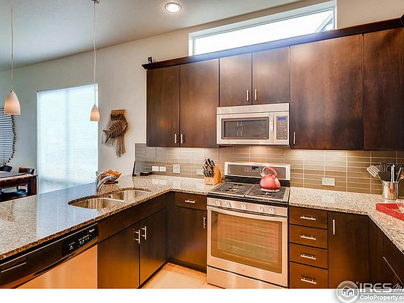 Exceptional, pristine, light & bright End unit townhome with 2400 Sq Ft, 3 bedrooms, 4 baths & a 2 car garage! Beautiful interior finishes incl hardwood floors, gorgeous kitchen with Maple Fusion-Kona stained cabinets, granite countertops & SS appliances, birch doors, and upgraded countertops & tile in baths. Rec Room or 4th bedroom with 3/4 bath in professionally finished bsmt. Elfa closet system in Master closet & added storage racks in garage. Great location in Louisville! Hecla lake trails!