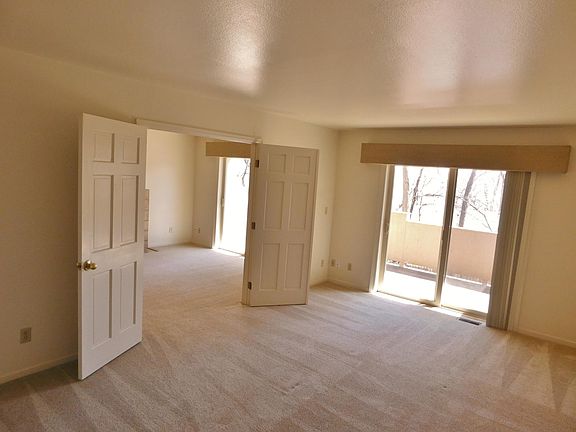 Maintenance free living in our quiet, locally owned townhouse complex near the Broadmoor, fitness center, grocery store, restaurants and hiking/biking trails. Large 1 bedroom 1 bath, garage with remote and storage unit. Garage is detached but has a covered walkway to the front door. Neutral colors with new plank flooring throughout the entrance and kitchen. 864 Square Feet Total. The bedroom is plenty large enough for a king bed, dresser, 2 night stands and a desk. Washer and Dryer included. Forced air gas furnace and air conditioning. Wood burning fireplace. Walk-out from both the living room and bedroom to the large deck with mountain views! Large lot with plenty of parking and dog walking area. Utilities are the responsibility of the tenant. Snow removal, trash and recycling is covered by the landlord. Fully refundable $500 pet deposit. Call 719-884-1164 for a showing. Maintenance free living. Tenant pay for utilities.