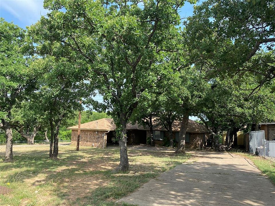 3 bedroom brick home with 2 baths - Spacious living room with wood burning fireplace - New central heat and air (installed in approx. 2019) - Laminate wood floors throughout - Kitchen has built-in appliances - Enclosed back porch provides view of Lake Graham - Property includes 2 lots - Chainlink fence with automatic gate openers - Storage building - Circle drive - Washer & dryer stay - Refrigerator stays