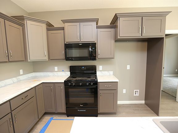 Beautiful new home split bedroom ranch home in Huntertown. 9' ceilings make this home home feel even more spacious and open. The kitchen offers custom maple painted cabinetry with an island, breakfast bar and walk-in pantry. A stainless steel gas range, dishwasher and microwave are included. The open great room has a cathedral ceiling and picture windows overlooking the backyard. The master suite offers a private entry. A large walk-in closet provides plenty of space along with a full bathroom complete with a linen closet, 5'wide vanity and fiberglass shower. Just off the garage is a spacious laundry room with shelving. This home also offers Andersen high performance windows, 12x11 concrete patio and painted interior trim and doors.