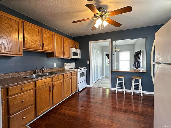 This charming 2-bedroom home on Evansville’s east side is move-in ready and full of updates. Inside, you’ll find a spacious living room with new laminate flooring and arched doorways that add character and charm throughout the home. The kitchen continues with the same flooring and features a custom breakfast bar that opens to a dining area. Kitchen appliances are included, making it easy to get settled. The bathroom has been nicely updated and includes a bead-board ceiling for added style. There's also a separate laundry area with appliances included, for convenience. Outside, the fenced-in backyard offers a relaxing space with mature trees, a fire-pit and a patio area perfect for enjoying the outdoors. The home has been freshly painted inside and out. Per the owner, recent updates include fresh gravel on the driveway, fresh mulch and landscaping, and new outdoor plumbing from the cleanout to the city line connection. A 1.5-car detached garage is included and the garage is being sold as-is.