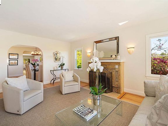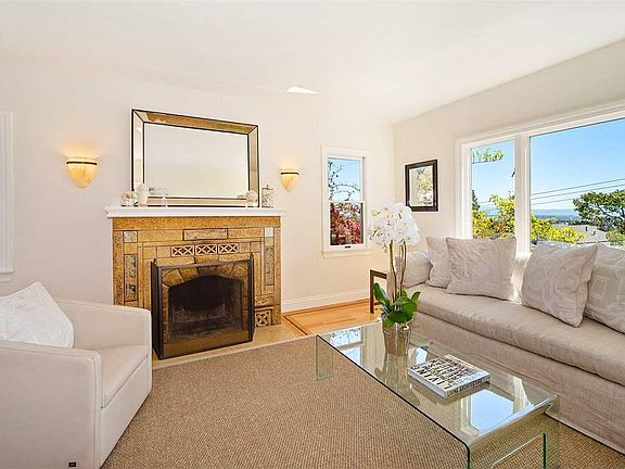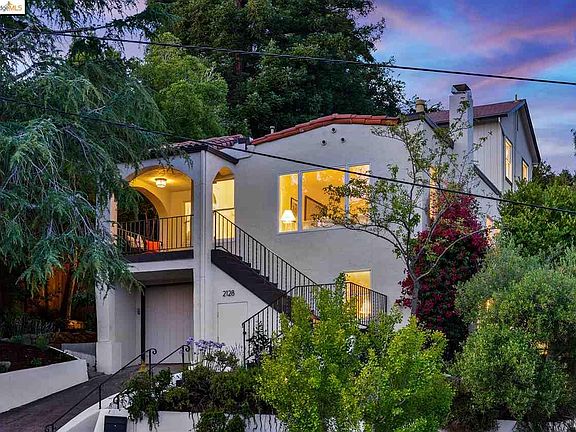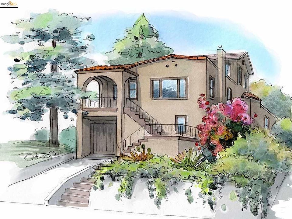 Beautiful Modern Mediterranean in Oakmore with Bay views enjoys a mix of classic architectural details and tastefully updated modern finishes. Arched doorways and pass-throughs open living room to dining room and beyond to a stunning kitchen. The kitchen is filled with high end appliances to complement luxurious soapstone counters, and a dramatic richly-grained tigerwood countertop at the bar sink. The kitchen opens to a large family where glass doors create a seamless transition between the indoor and outdoor spaces. Two bedrooms and a hall bathroom complete the main level. The upstairs master is an expansive room overlooking an urban oasis. The lower level guest suite is fantastic. The expansive backyard unfolds over several levels. Japanese maples mix with majestic oaks and a wall of bamboo, and a tree house at the rear of the deep lot creates a magical destination. A private oasis and only moments away from transportation, restaurants & parks.
