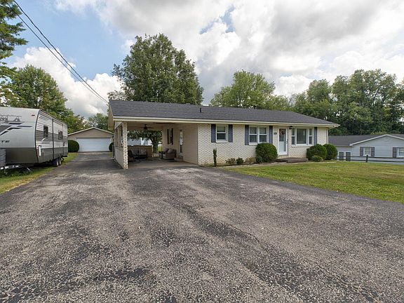 Only 5 minutes from town is this very nice 5 bedroom, 2 bath brick home with matching brick 2 car detached garage ,an attached carport/covered patio, gazebo and full finished basement, wood burning insert fireplace, hardwood flooring under the laminate flooring on the 1st floor, Stainless steel appliances, 1976 +/- sq ft with 988 +/- sq ft on 1st floor and 988 sq ft +/- in finished basement all sitting on .33+/- acres. Buyer to verify schools, sq footage and acreage.