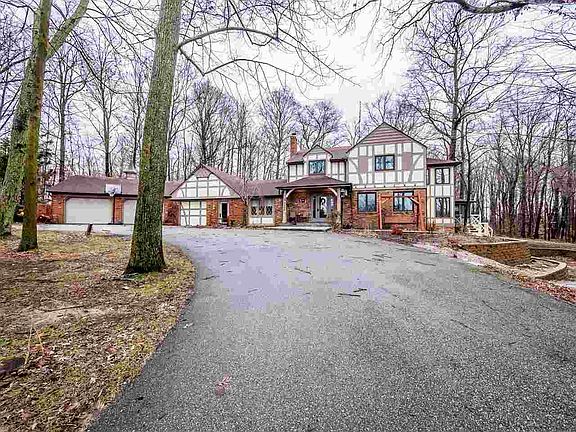 Have you been looking for a large wooded lot close to town, yet secluded? Look no further! The 4 bedroom, tudor-style home with attached 3 car garage sits on a picturesque wooded lot, behind a circular driveway. The outdoor space has plenty of room for entertaining or gardening! A generous foyer and formal dining room greet guests. The open kitchen, with seating at the breakfast bar, adjoins an additional dining area and family room (with fireplace). The den boasts a second fireplace and loads of space! Do you like watching wildlife? There's plenty of space to enjoy a board game or a cup of coffee in the 3 seasons room! All four bedrooms, (and laundry area!) are located on the upper level. The walkout basement provide a great area to stay inside and enjoy the projection unit for a cozy family movie night. Hurry! This home is a must-see!