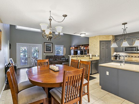 If your looking for turn key perfection wait until you see this 4 bedroom, 3 bath plus game room beauty! Spectacular appointments radiate this home from every angle. Updated kitchen with double SS refrigerators, double ovens, tile backsplash, and island with sink. Laminate wood flooring in family room (with 20 ft ceilings) and all bedrooms. The screened in back porch is tiled with an amazing custom built in summer kitchen with stacked stone, granite counters, double gas burners, huge grill, fridge and sink. Enjoy nice evenings with the backyard facing east looking out at the lake under the palm trees amongst the paver deck and Jacuzzi tub. This corner lot offers lots of spacious living.