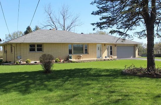 ATTN First-Time Home buyers or Empty-Nesters or YOU! All brick, well-maintained home in a quiet, unincorporated, and established neighborhood. Two large bedrooms on the main level, with cedar closets, hardwood floors and automatic lights. Cedar closets in the basement too! Cozy eat-in kitchen with lots of cabinets. ALL APPLIANCES STAY! Nice living room with attached dining room. Built-in storage in the hallway! The roof is eight years old! Furnace and the central air unit are both six years old! Water softener and whole house water filter too! Large, finished basement with marbleized concrete floors, main area with two bonus rooms, a large laundry area and an extra area that has been used for exercise room! Large patio for entertaining or watching the stars at night! Large yard! Low county taxes. Less than one mile to Bypass 20!