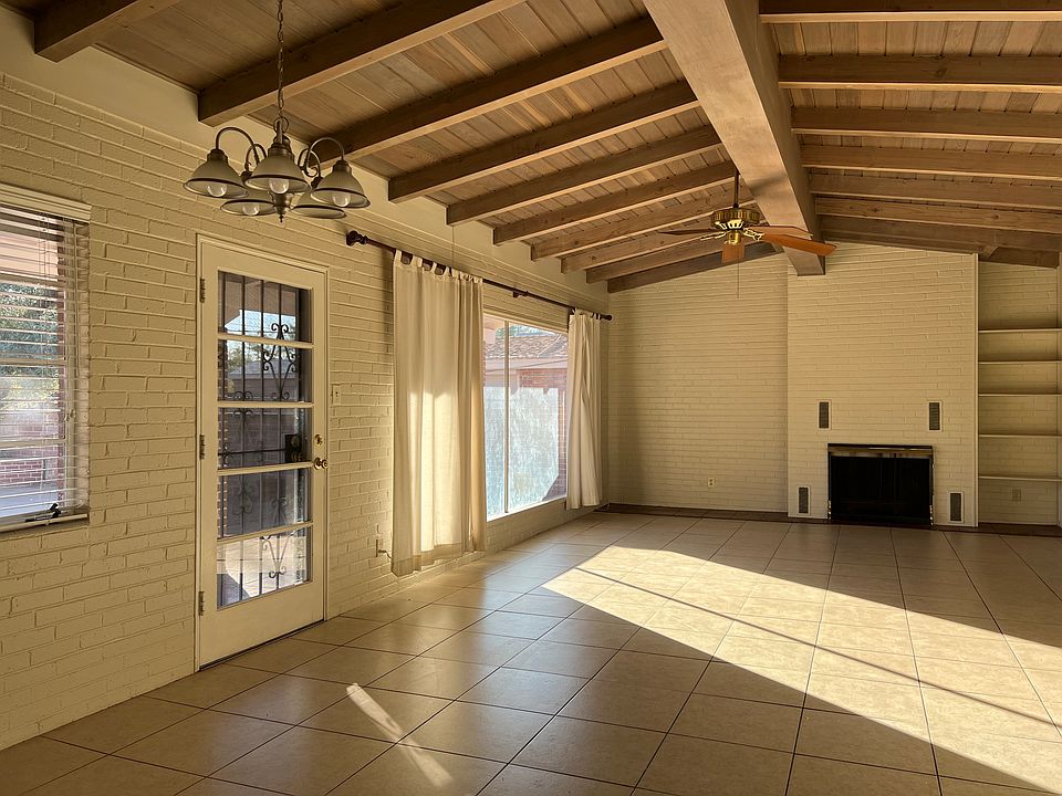 Beautiful brick 3 bedroom, 2 bath home in historic neighborhood, with vaulted ceilings and natural light throughout. Tile floors, spacious kitchen and laundry center. Dishwasher and garbage disposal. Large gated yard, carport and additional off street parking. Located within walking distance of the University of Arizona and University Medical Center.