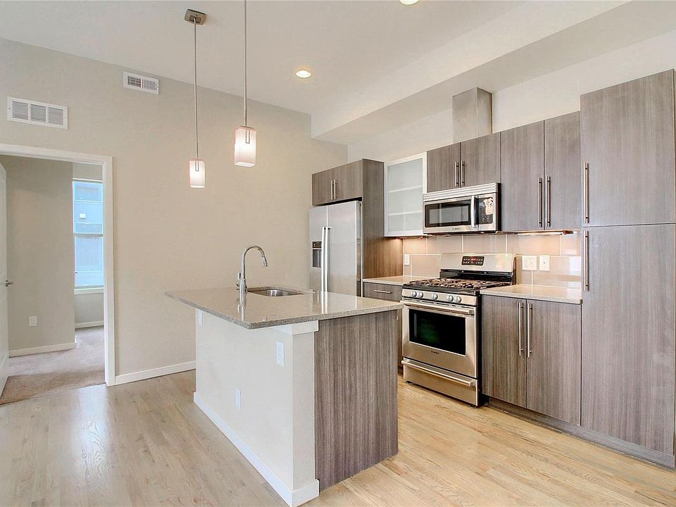 Welcome to your beautiful 2 bed, 2 bath townhouse with a fabulous location! You'll love the open concept layout, featuring a cozy fireplace, beautiful hardwood floors. Perfect for hosting, your stunning kitchen boasts quartz counter tops, and stainless steel appliances. End unit location allows for extra natural light throughout the home. Double master bedrooms feature en suite bathrooms and walk-in closets. Enjoy summer days on your spacious balcony, taking in all the Colorado sunshine. Attached 2 car garage meets all of your storage needs. Wonderful location, your home is located in the heart of Jefferson Park, and is within walking distance of restaurants, parks, and amenities.