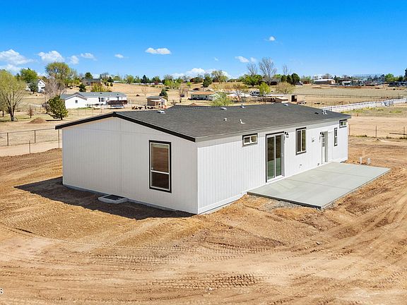 Brand new NO HOA home sitting on a beautiful fenced 2-acre lot! Paved road almost to the property. New private well producing 60 gallons per minute! This 4 bed 2 bath home is ground set on block stem wall so no need to go up or down stairs! You will love your new acreage while relaxing on the large front and rear concrete patios to be installed. Plus, enjoy the many UPGRADES this home offers including 9' high flat ceilings, large ceramic tile master shower, stainless steel farmhouse sink, upgraded SS appliance package including a side-by-side refrigerator! 2'' faux wood blinds throughout, 2x6 construction with upgraded insulation & architectural shingles. 1-Year Manufacturer's warranty included! Move-in ready early May. Pictures of interior are of same model but different home.