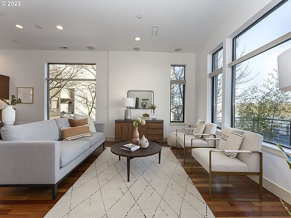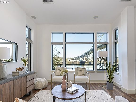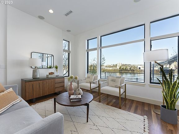 Panoramic Willamette River & Fremont Bridge views stun from this corner unit townhouse condo with access to private river walk! High ceilings & ample windows bring majestic sunrises & afternoon light to great room living spaces ideal for entertaining. Outdoor personal patio perfect for sipping espresso to ships passing by. Primary suite offers work-from-home nook, balcony & spa-like jetted tub. Blocks to NW boutiques, markets & eateries. Ample storage & 2-car attached garage make this a win! [Home Energy Score = 4. HES Report at https://rpt.greenbuildingregistry.com/hes/OR10207288]