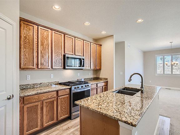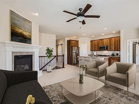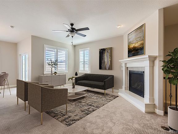 Awesome main floor living in this ranch floorplan backing to open space! The open floorplan is perfect for entertaining or spending time with family. The well-designed kitchen with granite counters, stainless steel appliances and a separate pantry has everything you need to easily prepare meals. The spacious great room has a fireplace that provides warmth on those cold winter nights. The eating area has incredible natural light thanks to windows on two sides! Plantation shutters add an elegant touch to the main floor living area! The master suite has an enormous walk-in closet that will accommodate even the largest wardrobe collection. The low entry walk-in shower is easily accessible even for those without great mobility. Dual sinks, a water closet and a linen closet complete the master bath. The main floor has 2 additional bedrooms that share a guest bath. The front bedroom makes an amazing home office with a large southern facing window providing abundant natural lighting. A mud room directly off the garage has lockers to hang your coats. The almost 1700 square foot basement provides additional living options. The finished space has a large great room and additional guest suite. The great room has space for your home theatre and workout area. There is also a 22’ by 13’ partially finished area that was used as a wood shop! The covered back patio is the perfect place to enjoy your morning coffee or the beautiful Colorado evenings! With this home backing to open space and no homes behind, the back patio has privacy not normally found in newer neighborhoods! The natural looking artificial turf in the backyard is zero maintenance so you don’t spend extra time mowing or taking care of the yard. The oversized 2 car garage has an additional 12’ by 6’ area in the front of the garage for a workbench or additional storage. The community pool is a 2 minute walk from the house and walking and hiking trails run throughout the community. 1 Year Home Warranty Included.