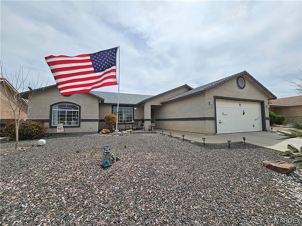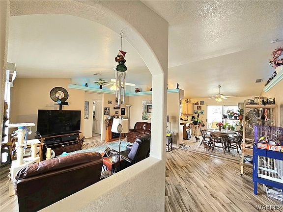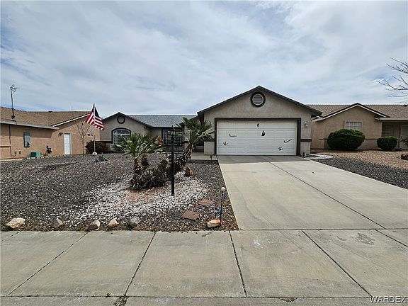 Excellent location in the highly desirable neighborhood of Ridgeview Ranch off Hualapai Mountain Rd. 3 bed, 2 bath, 2 car garage, Excellent floor plan with the kitchen in the rear of the hone, Large corner walk-in pantry, vaulted ceilings in the kitchen and living room. Split bedrooms. Large master bedroom with a large walk-in closet and large bathroom with dual sinks and walk-in shower. Nice laundry room with cabinets. Beautifully landscaped front yard. Back yard is fully fenced with a block wall and lots of privacy and a storage shed.. Window coverings . Better hurry this one won't last. Added to this house: Vinyl plank flooring, security door, garbage disposal, water heater, tough shed, accent walls and trim, trim paint outside, smart garage door opener, refrigerator, washer and dryer, knobs on all cabinets and drawers. Call Sue for an appointment.