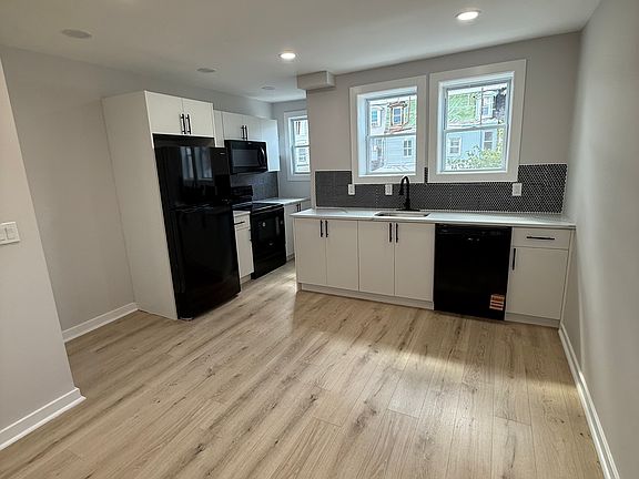 Renovated rohome with convenient location to major roads. Property features modern kitchen with granite countertops and all brand new appliances. 3 bedrooms upstairs with renovated bathroom (note 3rd bedroom is very small - could be a nursery or an office) Basement has laundry hookups. Garage and convenient dedicated parking in the rear.