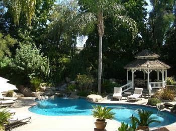 Exclusive gated neighborhood in Palm Bluffs.If a picture tells a thousand words you will be even more impressed as you enter the Foyer & find yourself excited to continue throughout. Spiraling staircase and a view to the Family Living & Dining Rooms.Family room with its grand pickled wood beam cathedral ceilings Wet bar Hand craft amazing Brick fireplace/entertainment center opens to the eating area and Beautiful backyard. This gourmet Kitchen has granite newer hardwood floors two convection ovens and amazing view of this park like setting. Separated Office or workout area and bedroom with a bath.There are two rooms separated by a jack-n-jill bath.Large Master suite with a large private balcony. Master bath is stunning with a soaking tub and shower and huge walk in closets. The backyard is definitely one of a kind on the bluff sunken pool 3 gazebos with an outdoor kitchen in one and a private bath wet bar grass area and patios.Solar paneling atop a newer roof. A Must see!!