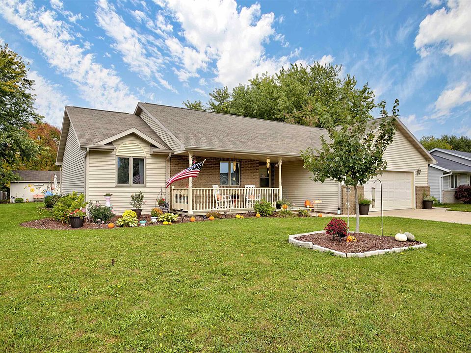 You will feel at home the moment you walk into this well cared for ranch home! Gorgeous fireplace in the living room, open concept kit/dining, appliances (double oven!) included. Master br with WIC and full bath with skylight. The lower level offers a huge family room with bar, office and other room currently used as a craft room. (LL and total sq ft approximate from measurements) Large unfinished area with tons of storage. Newer furnace and water heater. Patio doors off dining lead to deck overlooking the huge yard with firepit and shed. Oversized 24x26 deep garage too!
