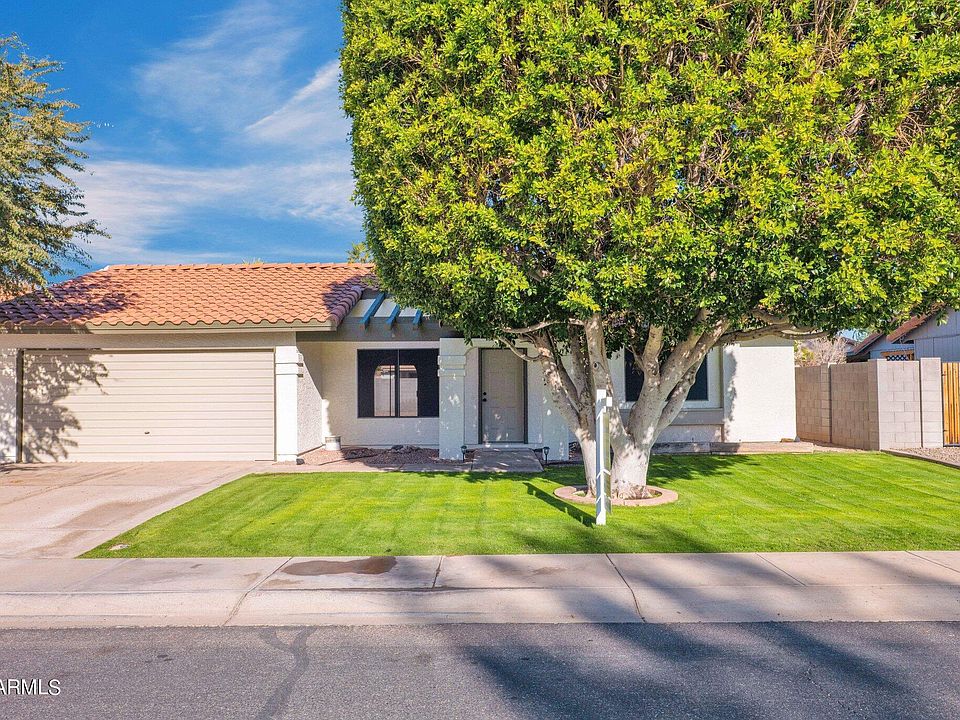 Absolutely Beautiful 2 BR 2 BA 2CG property on quiet interior N/S Lot, ideally situated in ultra convenient Chandler location near FWY and all amenities! Renovated inside and out, including a new roof in 2023, paint and highend luxury vinyl plank flooring, new Whirlpool Stainless Steel Appliances, including Refrigerator, and Bathrooms like Brand New! New A/C in 2020, Designer Kitchen update w/LED lighting, new deep sink with pullout faucet, new garbage disposal, custom brushed brass cabinet hardware, in a light drenched kitchen and dining area certain to warm the soul. Generous Rear Covered Patio, in a large yard complemented by mature shade and citrus trees. Excellent Great Room layout with large bedroom closets and cabinet drawers & storage in bathrooms and laundry room. It's a ''10