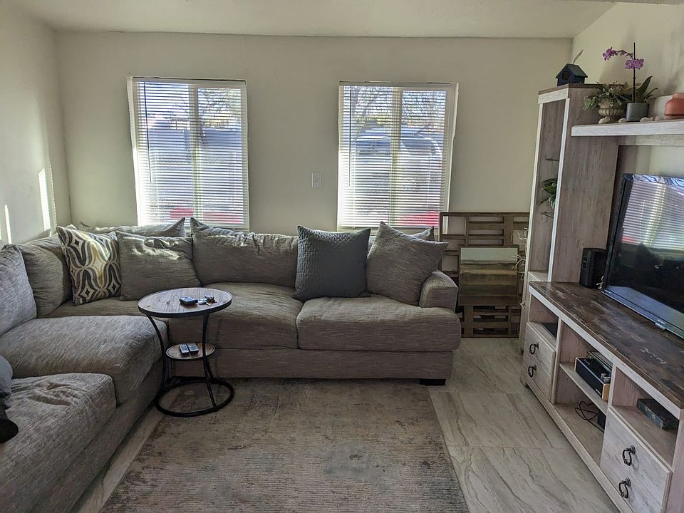 Two bedroom one bath home with tile throughout. New AC and heat. Access to Washer and dryer. Security screen door. Freeway access nearby. Great sized yard. North / South exposure. Rental lease term flexible. No smoking.