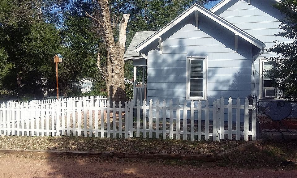 Folk Victorian in Old Colorado City. 2 Bedroom or 1 Bedroom-1 Office and 1 Bath. Dining, living room, halllway and bedrooms with hardwood floors. Appliances: Range, Dishwasher and Frig. Basement with washer/dryer in utility area. Back door access to deck on fenced lot. Privacy fence in back, picket fence in front. Detached oversized 2 Car heated garage with garage opener. Attic with substantial storage above garage with pull-down stair. Both house and garage have new roofs. Private driveway. Located in central OCC district with parks, shops and restaurants close by. Quiet low traffic street.